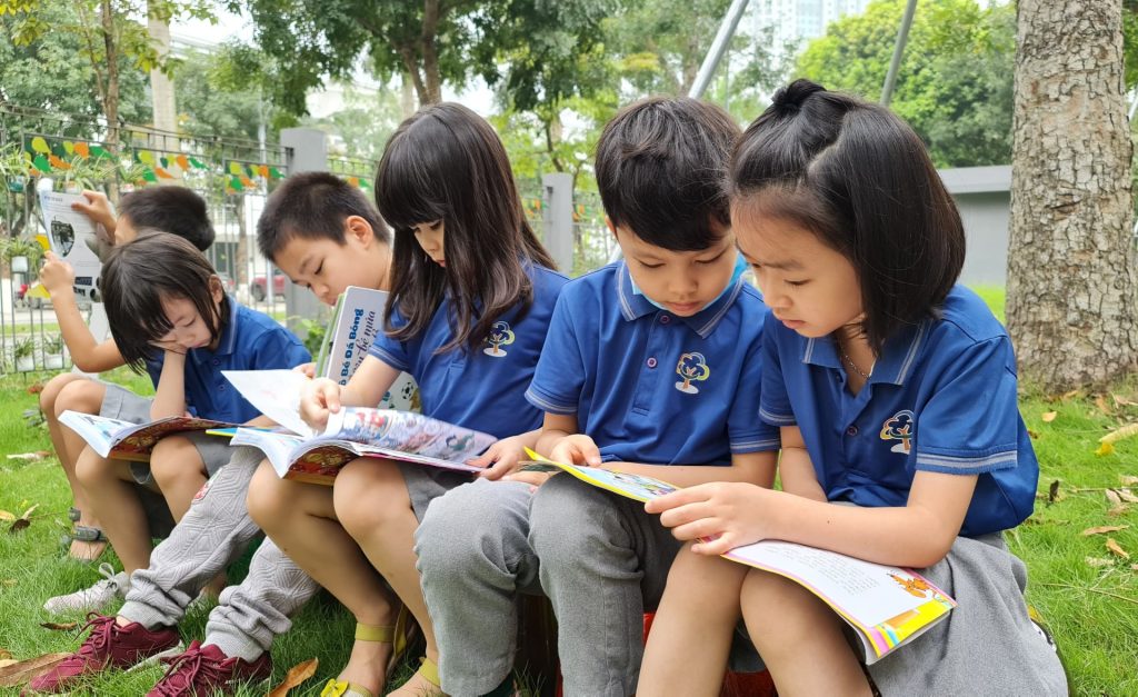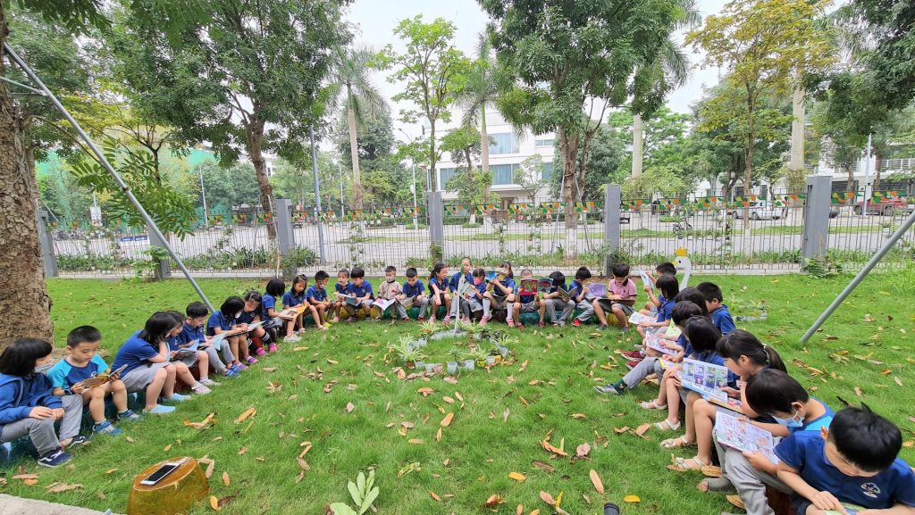 Hôm nay trời đẹp quá! Giờ đọc sách của lớp 1A3 ngẫu hứng chuyển ngay địa điểm ra khu vườn để hít thở không khí trong lành. Biết bao nhiêu hoạt động vui ơi là vui!
