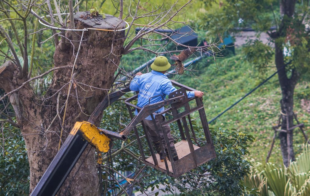 Chú tên là Duy Nguyễn, làm việc tại Ban Cảnh quan và Cây xanh đô thị Ecopark. Ngay trưa nay, chú nhận được tin báo của một nhân viên chăm sóc khách hàng báo tin cư dân Ecopark gọi tới thông tin về chú chim bị mắc kẹt. Ngay lập tức, chú gọi điện cho “anh bạn” lái cẩu và các chú công nhân của “ban cây xanh”. Các chú quyết định đầu giờ chiều sẽ đưa phương tiện tới giải cứu.