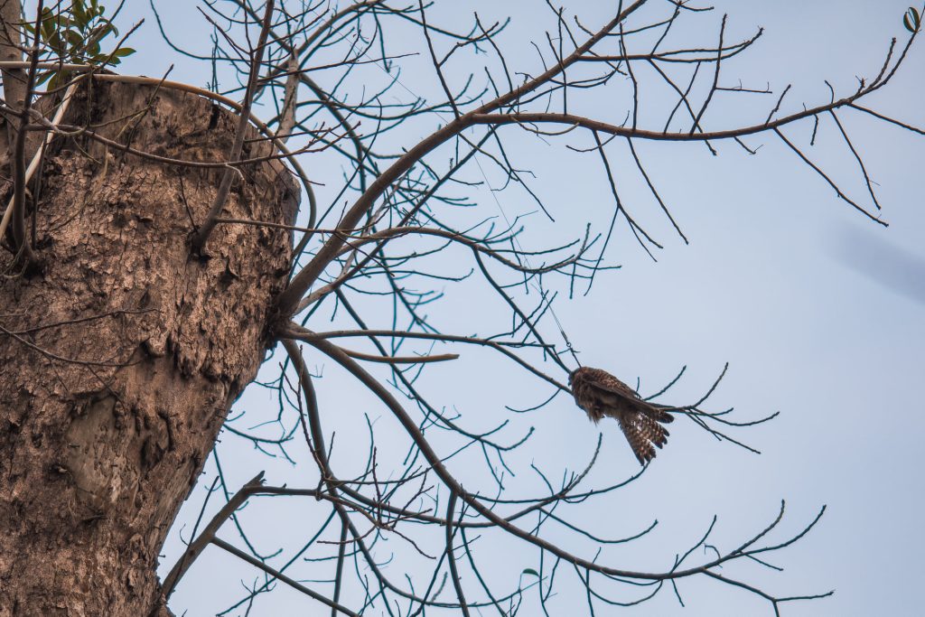 Nhiếp ảnh gia đó là chú Cường Nguyễn – người có rất nhiều bức ảnh đẹp về thiên nhiên và động vật. Tình cờ chú phát hiện ở ngon cây gần ban công căn hộ của mình có vật gì đang chuyển động. Sẵn có máy ảnh và ống télé tầm xa, chú zoom lại gần… Ồ, hóa ra là một chú chim, chú cứ giãy giụa tuyệt vọng vì đôi chân bị xích vào một chiếc dây, còn chiếc dây đó lại bị cuốn vào cành cây. Thương quá, làm thế nào bây giờ? Chiếc cây quá cao không thể bắc thang giải cứu. Tách tách tách… chú chụp nhiều tấm ảnh và đăng tải trên Nhóm Cộng đồng cư dân Ecopark: