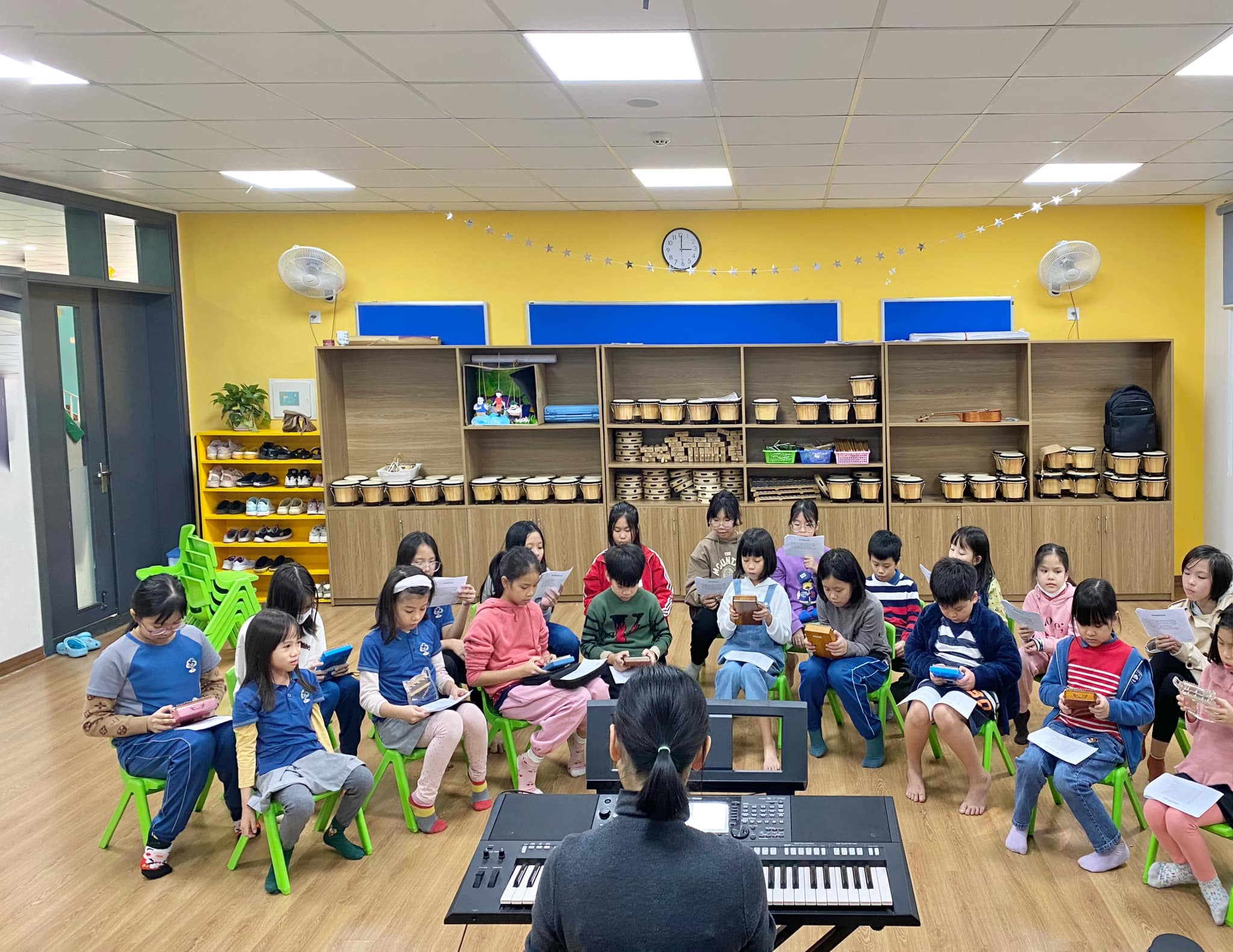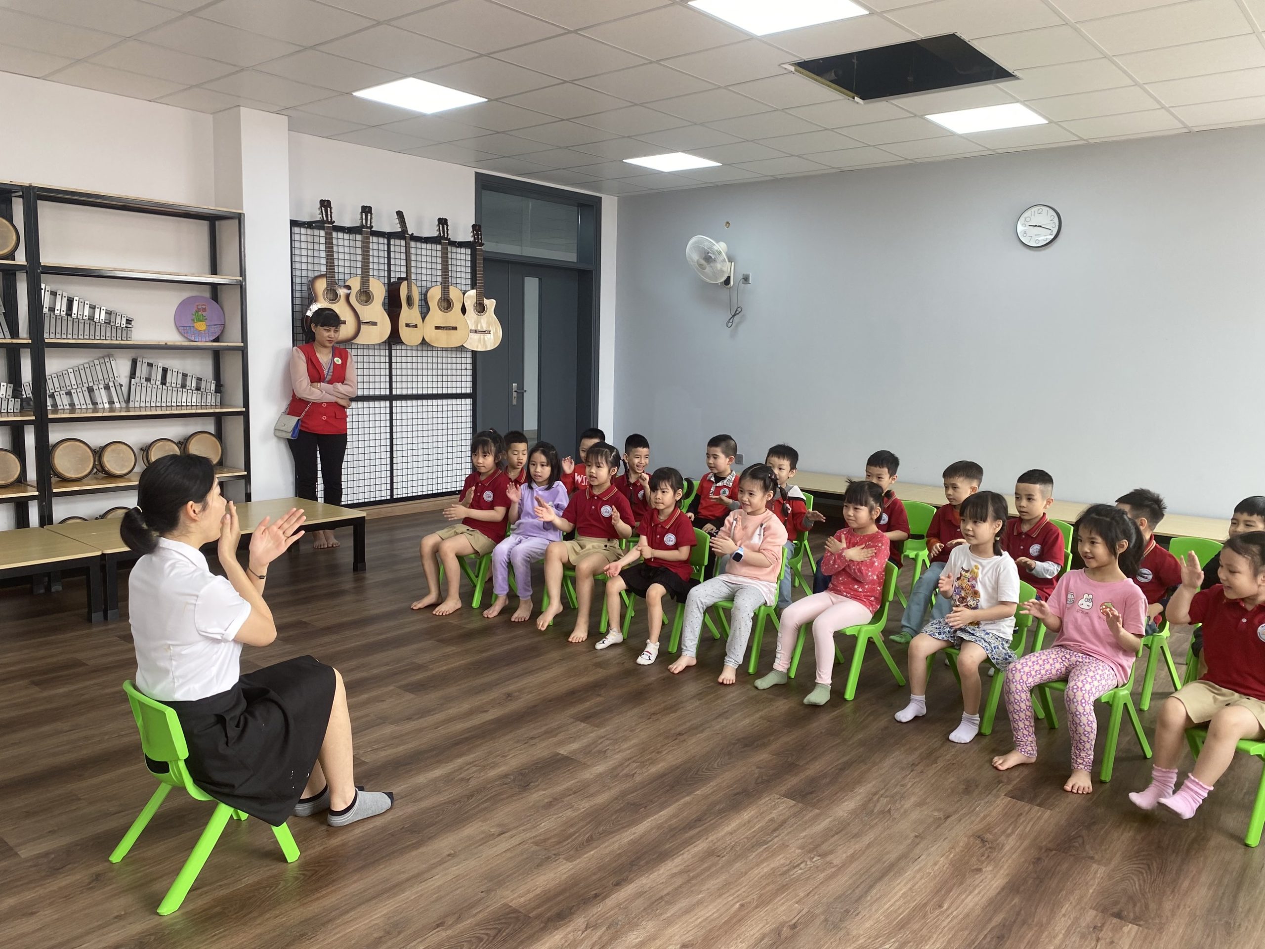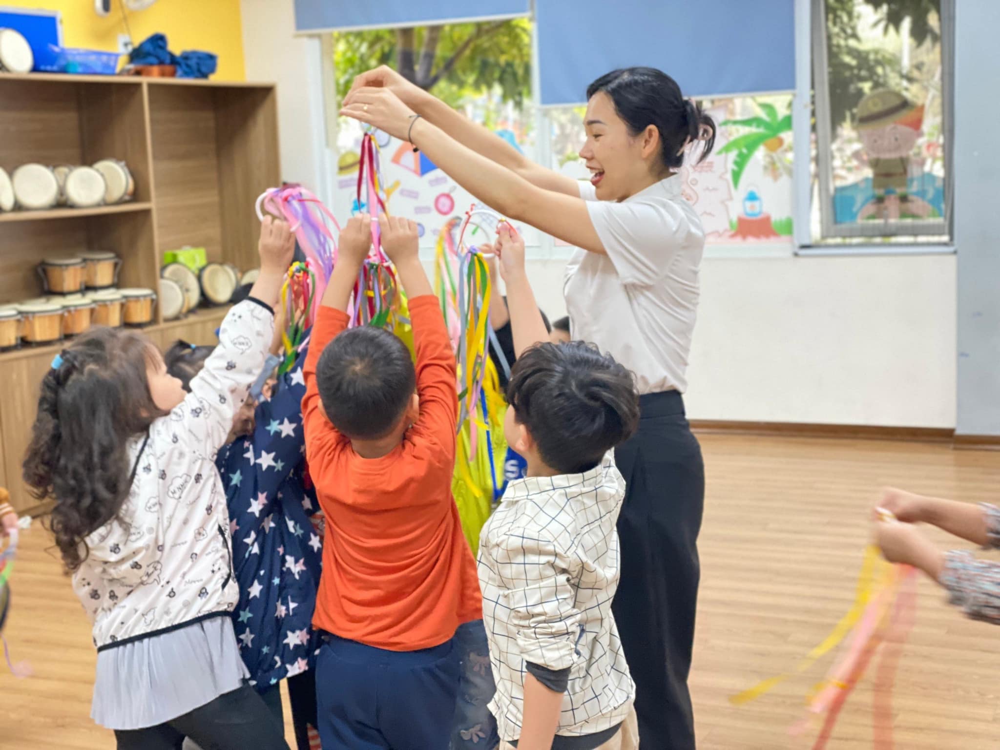Cô Thương trong một tiết dạy Âm nhạc cho các bé Mẫu giáo đến Edison trải nghiệm