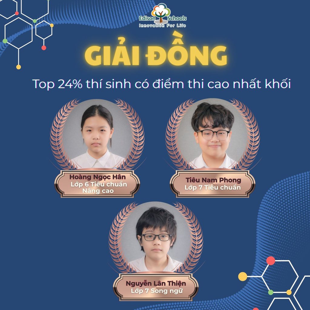 Những giải thưởng này chính là thành quả cho sự chăm chỉ, nỗ lực học tập của các bạn học sinh, đồng thời cũng là niềm tự hào về phương pháp giảng dạy đúng đắn, hiện đại của các thầy cô Trường THCS Edison. Hãy tiếp tục mang tư duy logic nhạy bén cùng niềm đam mê khám phá khoa học để chinh phục vòng thi quốc tế sắp tới vào tháng 06/2025 nhé!