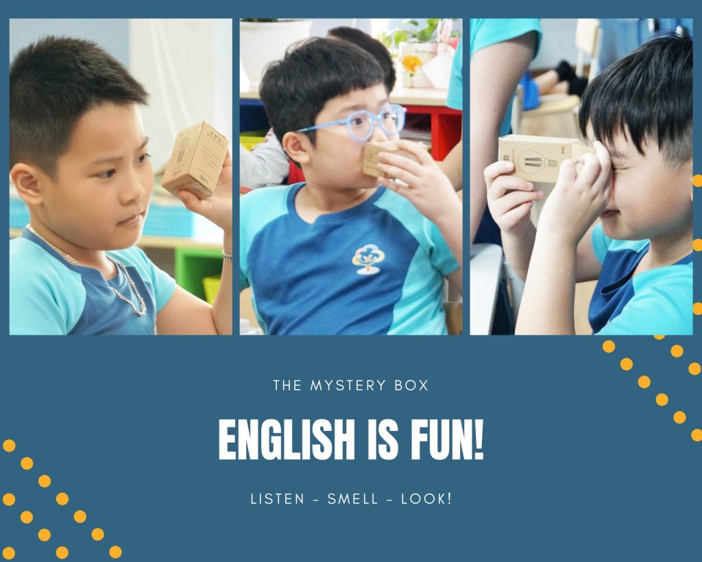 Bức ảnh được lựa chọn làm bức ảnh chính (cover photo) cho bài viết này đã thể hiện được sự háo hức, tò mò của Học sinh trong những giờ học. Ở các học sinh lớp nhỏ, việc khơi gợi trí tò mò của các con thông qua hoạt động “chiếc hộp bí ẩn” lại càng trở nên hiệu quả: thử ngửi xem nó có mùi thơm không, thử lắc nhẹ xem tiếng kêu của nó là “leng keng” hay “xột xoạt”, ti hí thử nhìn “trộm” một chút xem đồ vật bé nhỏ là gì… Eddie đón nhận và tiếp thu những kiến thức mới trong bài học bằng đầy đủ các giác quan của mình.