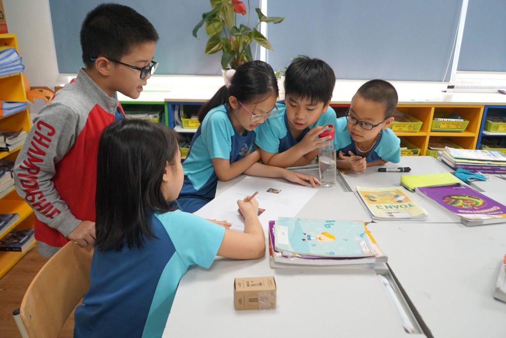 Hàng loạt câu hỏi được tự các bạn suy nghĩ và đưa ra với mong muốn từng bước, xâu chuỗi các thông tin về đáp án để tìm cho mình một câu trả lời hoàn chỉnh. Các hình thức học tập cá nhân, theo cặp, theo nhóm cũng được triển khai đan xen khiến cho không khí lớp học luôn thoải mái, đáp ứng được nhu cầu của các bạn nhỏ với phong cách học tập khác nhau.