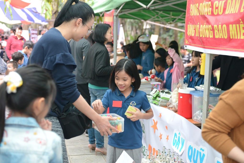 Những chậu hoa tươi thắm, ẩm thực ba miền cùng những gian hàng thực phẩm lành mạnh, an toàn, đồ handmade của Ban Phụ huynh cùng các Eddie được bán gây quỹ tại Chợ quê cuối tuần tại Ecopark.