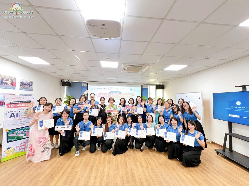 Chương trình Train the Trainers 2024 – AI Summer Camp là chương trình đào tạo và phát triển chuyên môn giáo viên kéo dài 01 năm với mục tiêu trang bị tới giáo viên những kỹ năng quan trọng để dẫn đầu giáo dục của tương lai gồm Tư duy Máy tính và Generative AI. Đội ngũ thầy cô giáo của Edison đã đồng hành cùng chương trình trong suốt một năm vừa qua. Đây thực sự là một chương trình đào tạo thiết thực, bổ ích, ý nghĩa đối với các thầy cô tham gia.