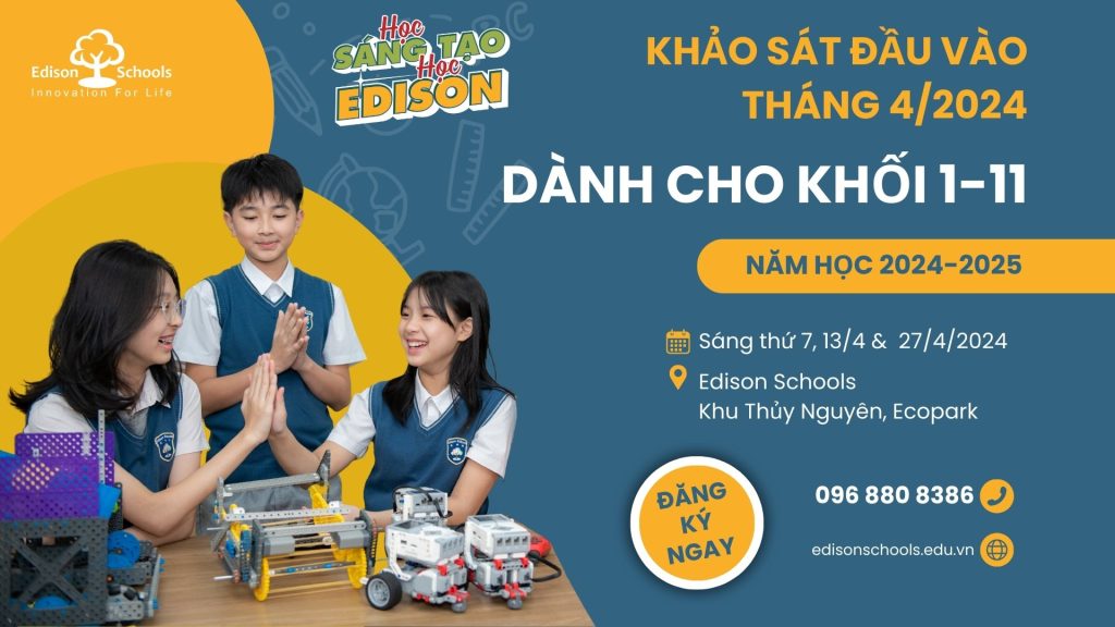 Edison Schools would like to inform the schedule for entrance exam for shool year 2024-2025 in Aprial, 2024 as below: Session 1: 8:00 – 11:30, Saturday, April 13, 2024 Session 2: 8:00 – 11:30, Saturday, April 27, 2024 This schedule is applied for all students from grade 1 to grade 11. Please contact our hotline […]