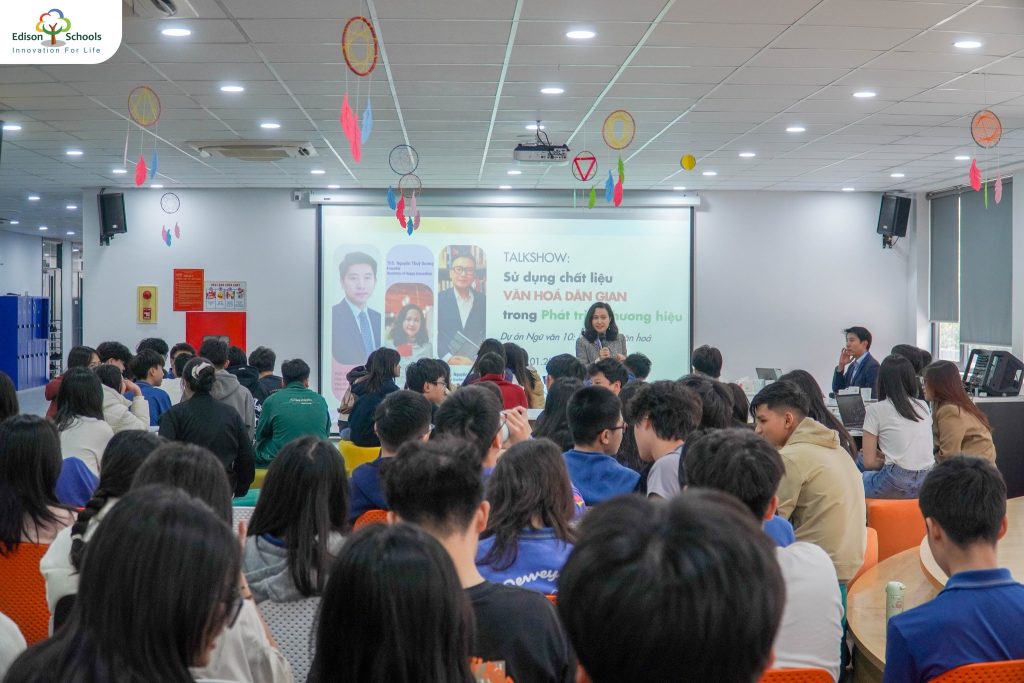 Tuần qua, các bạn học sinh Khối 10 đã có một cơ hội tuyệt vời để gặp gỡ các chuyên gia trong lĩnh vực Truyền thông và Nghệ thuật tại Talkshow “Sử dụng chất liệu Văn hóa dân gian trong phát triển thương hiệu”