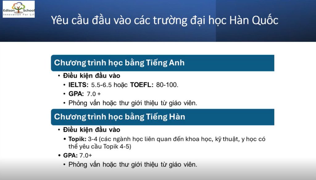 Với vị thế là nhà đầu tư số 1 tại Việt Nam, Hàn Quốc có 6 trường đại học nằm trong Top 100 Thế giới và 17 trường thuộc Top 100 Châu Á, tạo điều kiện học tập chất lượng cho học sinh quốc tế. Cô Lê Thị Thúy Nga – Điều phối học thuật Chương trình Quốc tế, Trường THPT Edison Ecopark, đã cung cấp thông tin chi tiết về các ngành học thế mạnh, học phí và mức lương trung bình tại Hàn Quốc sau khi tốt nghiệp để các bạn học sinh và phụ huynh có góc nhìn toàn cảnh về học tập tại Hàn Quốc.