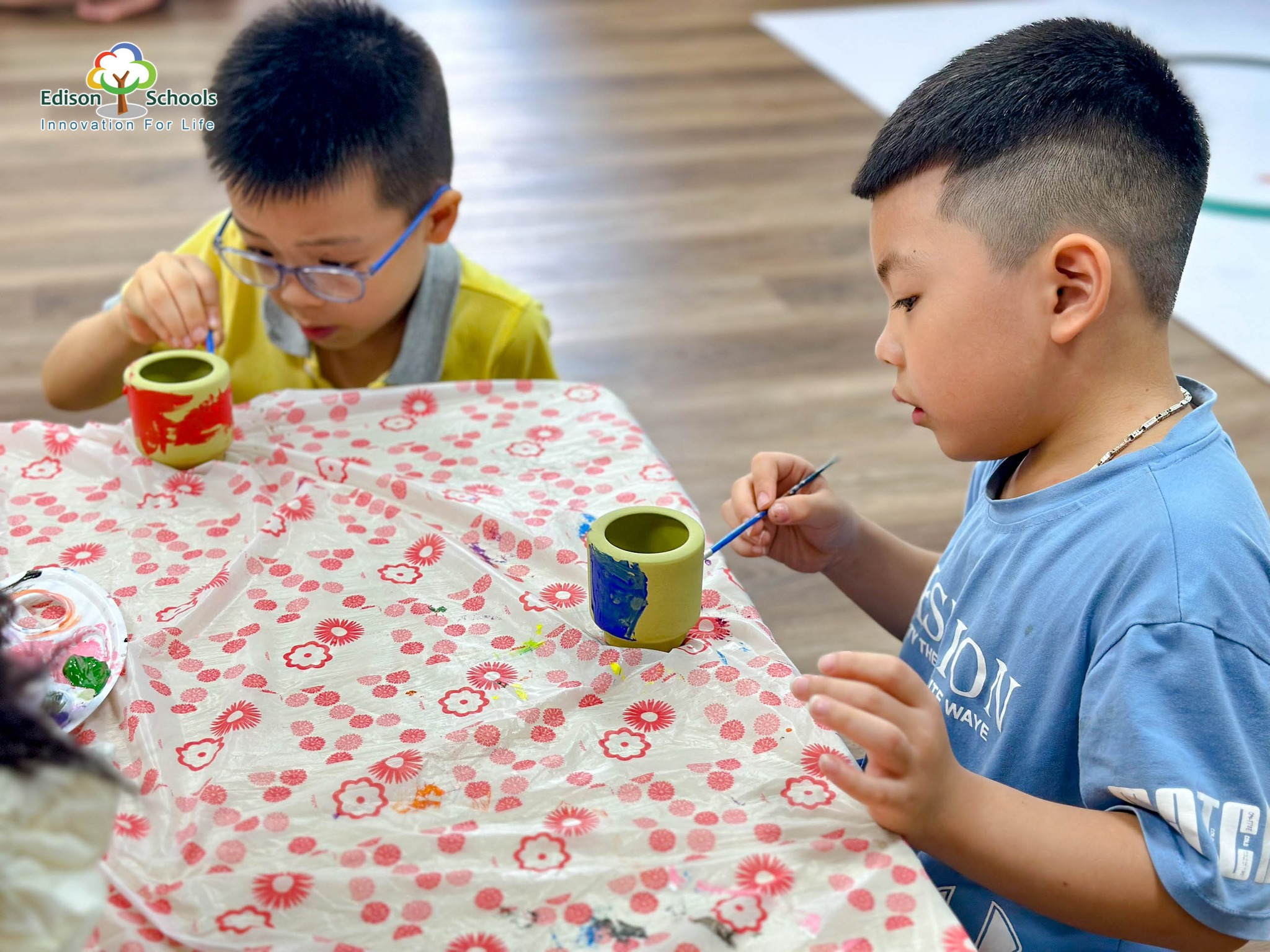 Làm và trang trí đĩa gốm tại trại hè Edison An Khánh
