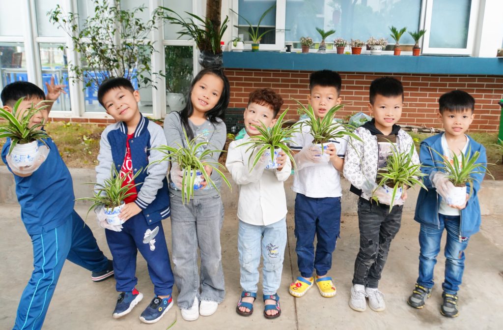 – Các Eddie đã được các cô hướng dẫn để tự tay thực hiện trồng từng chậu cây xanh.