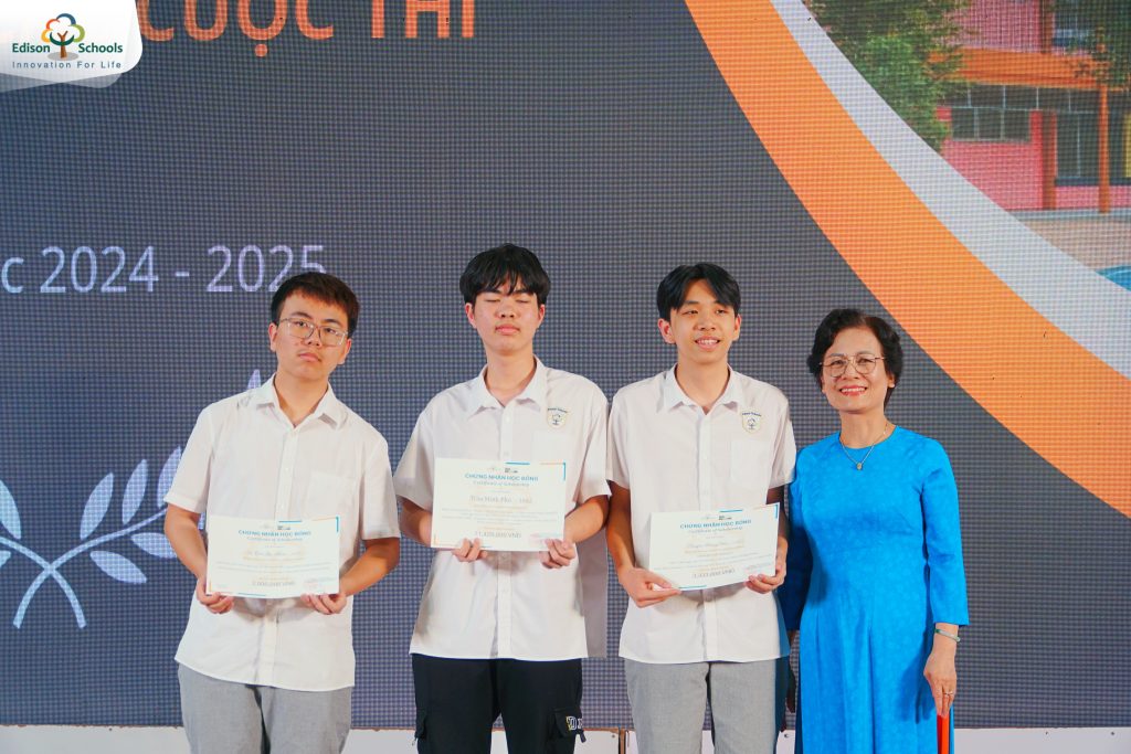 Trong buổi lễ, cô Nguyễn Thị Hồng Nga – Hiệu trưởng Trường THPT Edison Ecopark đã chia sẻ đầy cảm xúc: “Mỗi ngày đến trường, cô rất tự hào vì hành trình trưởng thành, bản lĩnh của các con học sinh trong năm học vừa qua. Các con chính là niềm cảm hứng để thầy cô không ngừng nỗ lực, đồng hành cùng các con trên hành trinh chinh phục những chân trời mới.”