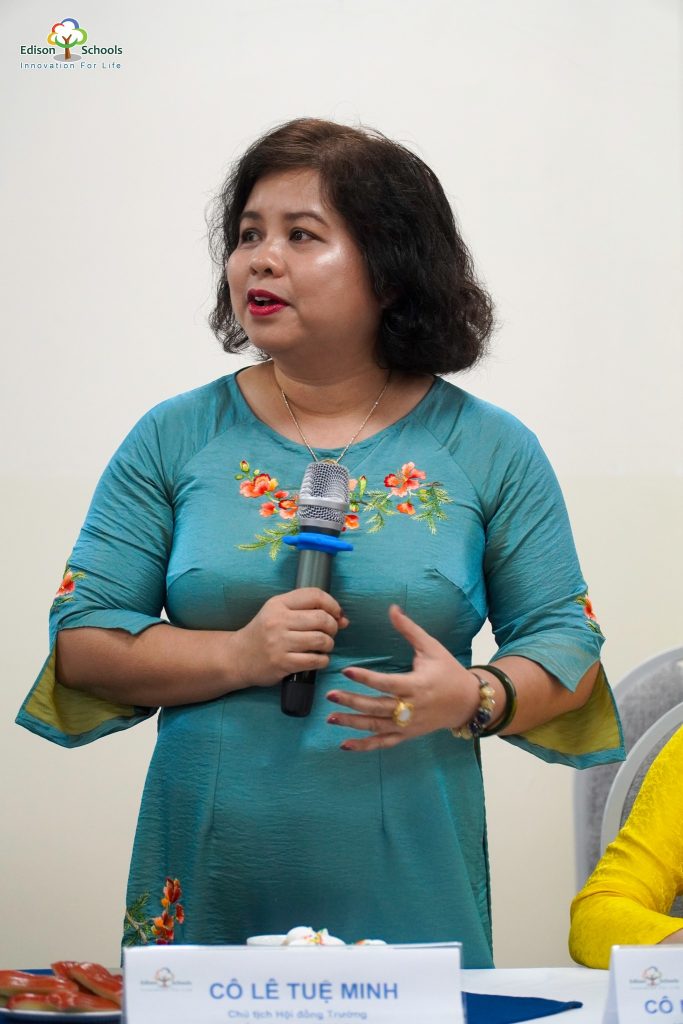 Cô Lê Tuệ Minh đã chia sẻ: “Con đường của Edison mang những màu sắc khác biệt mà ngay từ đầu có thể nhiều bậc cha mẹ chưa hiểu hết. Nhưng theo thời gian, sự tự chủ, sáng tạo, khả năng giải quyết vấn đề của các bạn sẽ là minh chứng rõ ràng nhất. Nhà trường luôn trân trọng và biết ơn các bậc cha mẹ đã tin tưởng và đồng hành cùng Edison. Rồi chúng ta sẽ thấy, trí tuệ nhân tạo dù có phát triển đến đâu vẫn sẽ không thể thay thế được hành động của con người. Những dự án của các con sẽ đi vào hiện thực, sẽ là hành động cụ thể, chứng minh ngay dự định và mơ ước của mình. Chúc các con thành công!”.