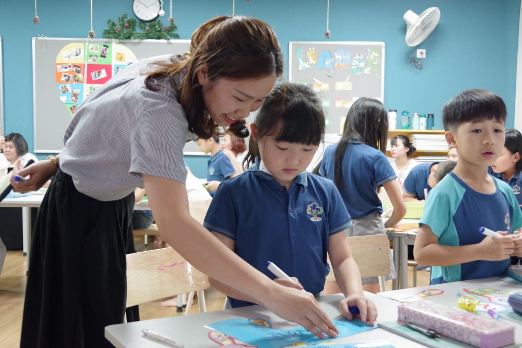 Không hề đâu bố mẹ nhé, vì chỉ trong vòng 1 tiếng đồng hồ, cô giáo đã sáng tạo rất nhiều hoạt động, cuộc thi, trò chơi, câu đố… kết hợp giữa các hình thức bảng/giấy/flashcard/video clip… nên giờ học trôi qua thật nhanh. Lớp học đã biến thành một sân chơi, trong đó các bạn được di chuyển, tham gia thi tài, chia sẻ những suy nghĩ và hiểu biết của mình.