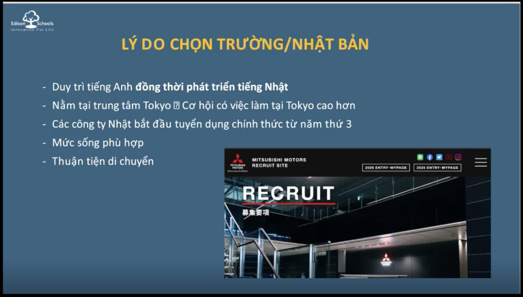 Câu chuyện đặc biệt từ Phạm Song Linh – cựu học sinh Edison và hiện là sinh viên năm nhất tại Đại học Quốc tế Tokyo (Nhật Bản) đã để lại nhiều cảm xúc. Song Linh chia sẻ hành trình của mình từ việc đạt học bổng du học Nhật Bản đến những trải nghiệm học tập và sống tại đất nước mặt trời mọc bằng tiếng Anh. Linh cũng không quên gửi gắm những lời khuyên quý báu cho các bạn học sinh đang mơ ước du học Nhật Bản, đồng thời bày tỏ sự biết ơn đối với nền tảng học tập vững chắc từ Edison đã giúp bạn tự tin bước vào giảng đường đại học quốc tế.