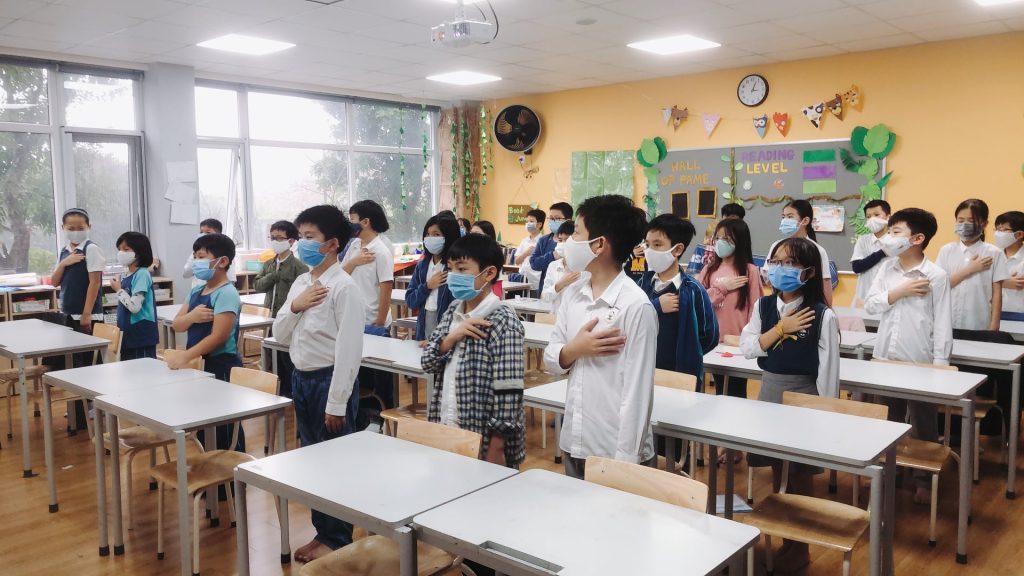 Tình hình dịch bệnh Covid hiện tại vẫn đang diễn biến phức tạp. Để đảm bảo an toàn, giờ Chào cờ của trường Tiểu học Edison đã được linh động điều chỉnh và tổ chức thông qua hệ thống phát thanh. Các Eddie sẽ ở tại lớp và nghiêm túc thực hiện với sự điều hành của giáo viên chủ nhiệm lớp.