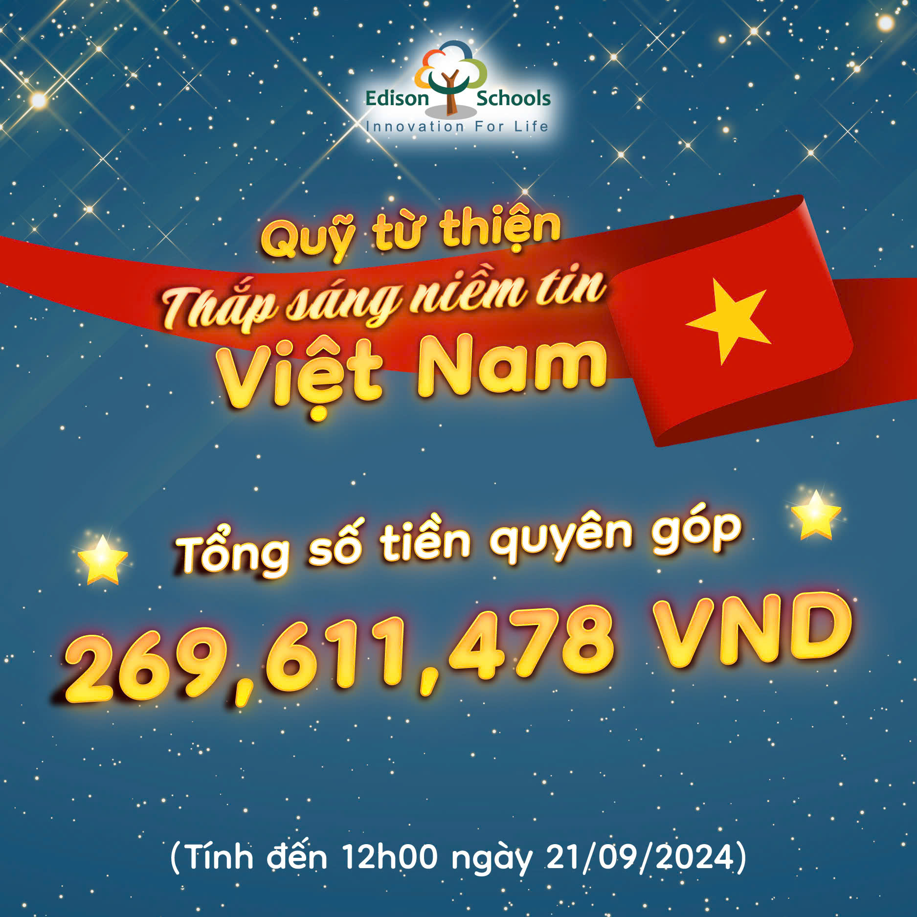Tính đến 12h00 ngày 21/09/2024, tổng số tiền quyên góp được của Quỹ từ thiện Edison Ecopark 2024 :”Thắp sáng niềm tin Việt Nam” đã đạt con số 269.611.478 VND (và vẫn tiếp tục cập nhật thêm). Trong đó: Đây là kết quả của tình yêu thương và sự sẻ chia từ các con học […]