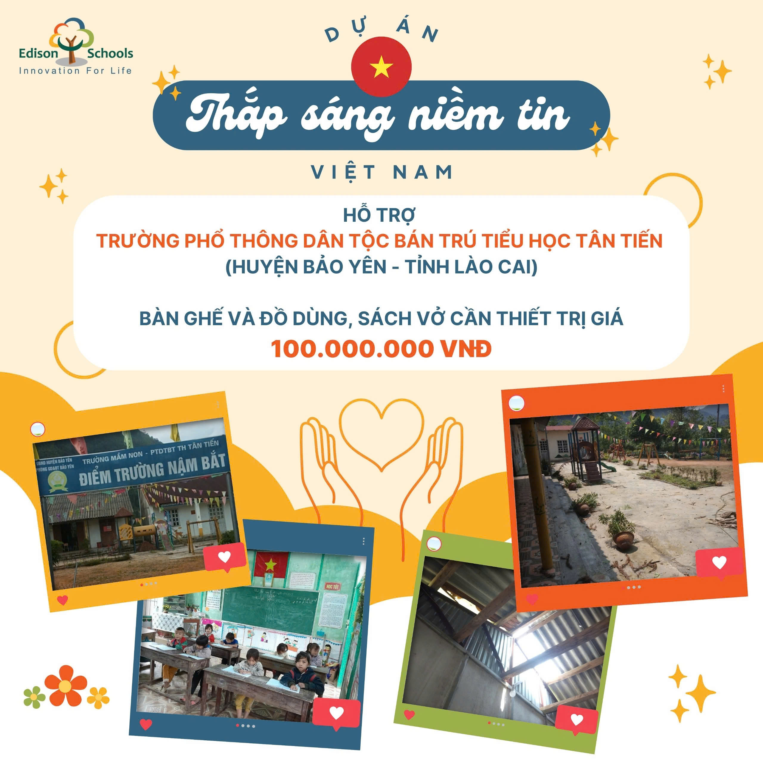 Dự án Thắp sáng niềm tin hỗ trợ Trường Phổ thông Dân tộc Bán trú Tiểu học Tân Tiến