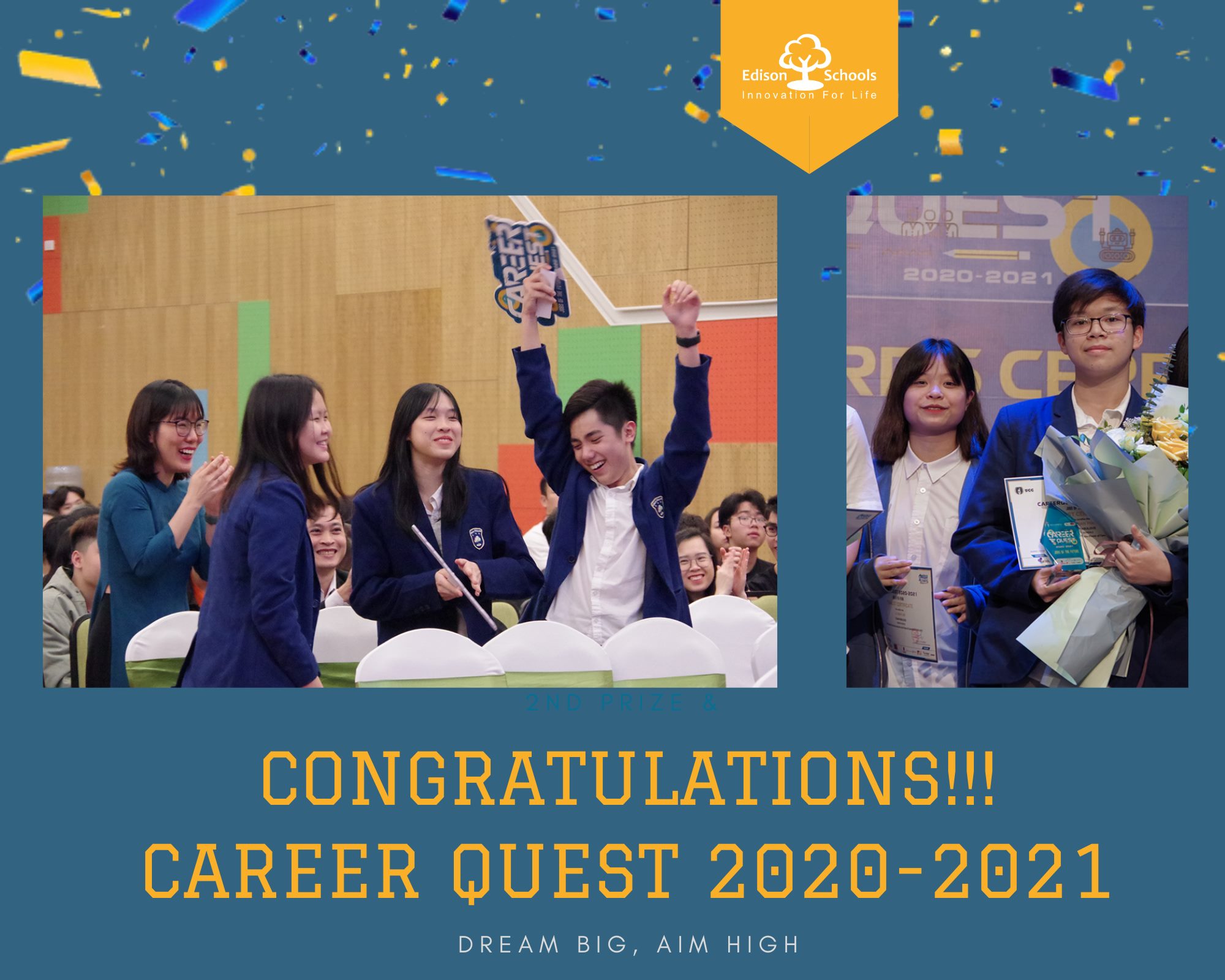 Một tin vui đã đến với Trường Trung học Edison vào tuần vừa qua: Giải thưởng thứ hạng cao (Giải nhì) của cuộc thi Career Quest 2020-2021 – tìm hiểu về “Thế giới nghề nghiệp trong tương lai -Job of the Future” đã gọi tên các Editeen trong sự bất ngờ và niềm hân hoan của tất cả khách mời và thí sinh tham dự cuộc thi!