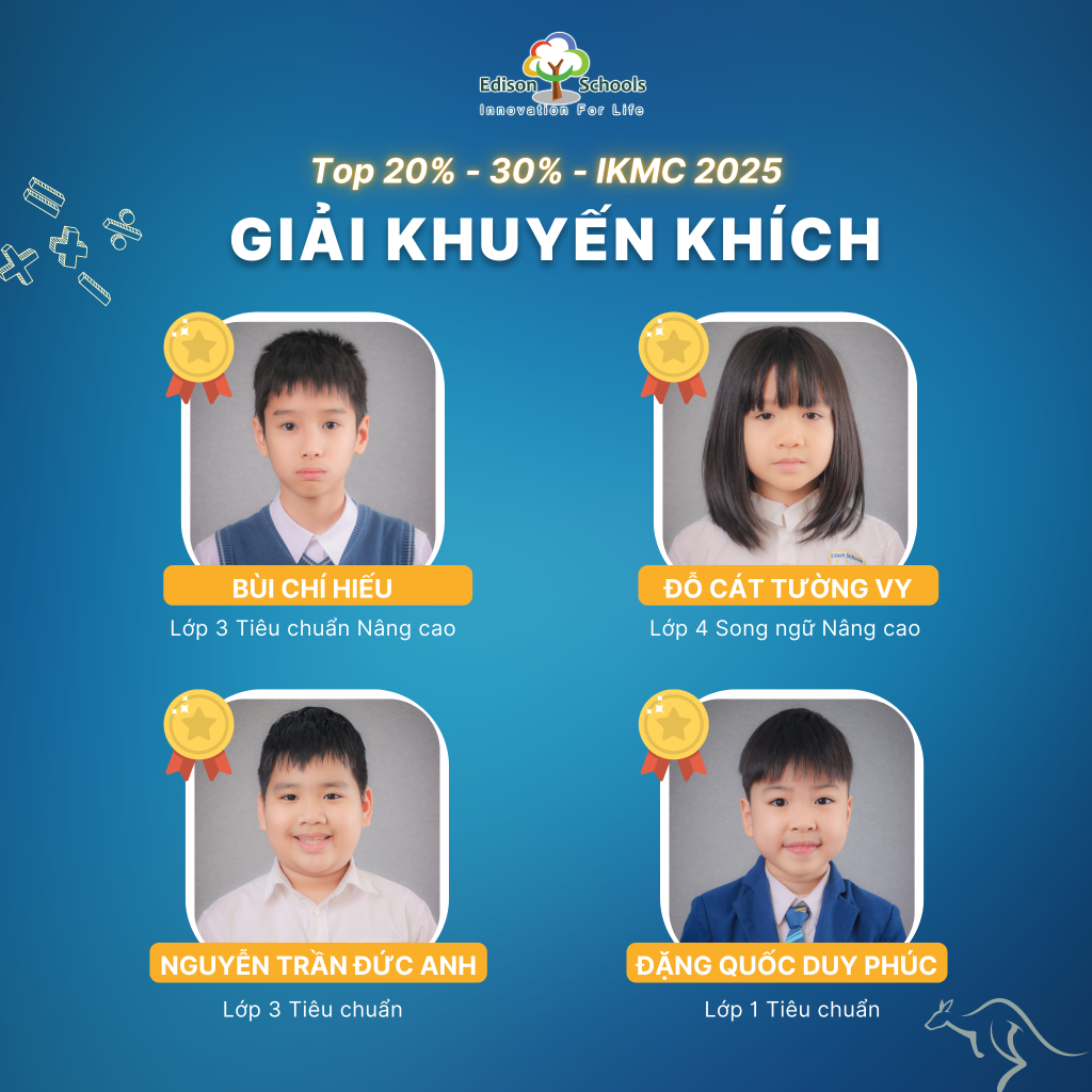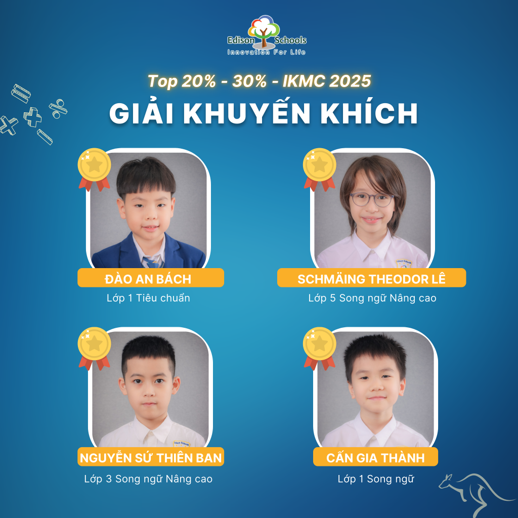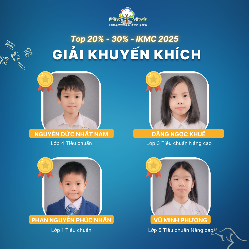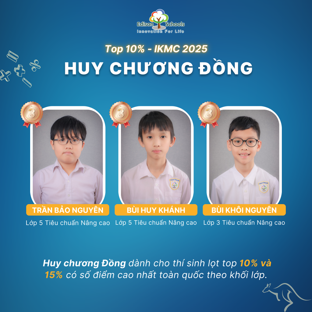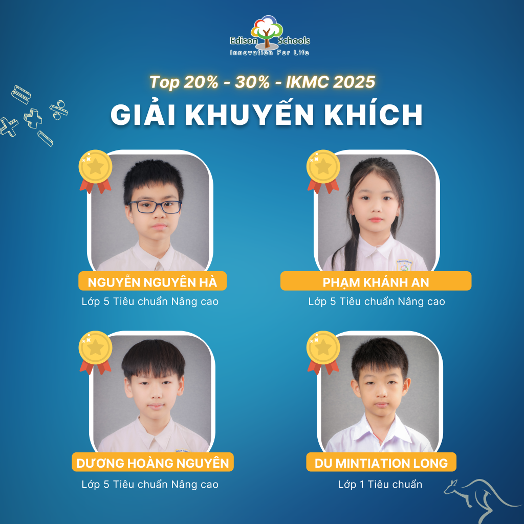 Với những nỗ lực bền bỉ và tư duy vượt trội, học sinh Edison đã đạt được các thành tích nổi bật tại kỳ thi IKMC 2025 như sau: