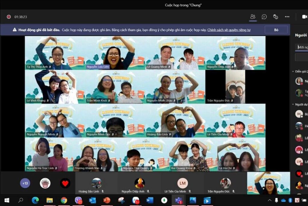Các Eddie Tiểu học đã cùng bố mẹ bắt đầu buổi Tổng kết năm học trực tuyến đầu tiên như một tiết học thông thường. Các cô giáo vẫn mặc đồng phục như trong ngày học trong tuần, vẫn nụ cười tươi rói thường trực đón các con trong “Lớp học trực tuyến”.